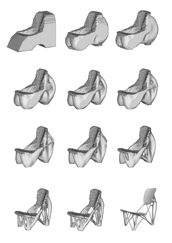 우선, 자동생성 알고리즘을 이용해 디자인을 한 사례는 필립 스탁이 첫번째는 아니다. 이미 2006년 네덜란드 출신 요리스 라만(Joris Laarman, 1979-)은 뼈의 자동 생성과정 알고리즘을 적용한 Bone Chair(2006)을 선보였다. 인간이 앉을 때의 하중과 포지션을 입력하면 의자의 주요 구조체들이 하중과 포지션에 최적화된 형태로 자동 돌출되는 디자인 문법을 완성시켰다. 흥미로운 지점은 이런 의사-자연 알고리즘을 적용한 디자인의 결과물들이 아르누보시대의 형태와 흡사해 보인다는 것. 아르누보가 자연을 의태해 장식적 요소에 그쳐 망한것과 달리 알고리즘을 적용한 디자인 결과물들은 자연적 요소를 기능과 결합해 최적화한 결과물들을 만들어냈다는 데서 새로운 시대를 예고했다.