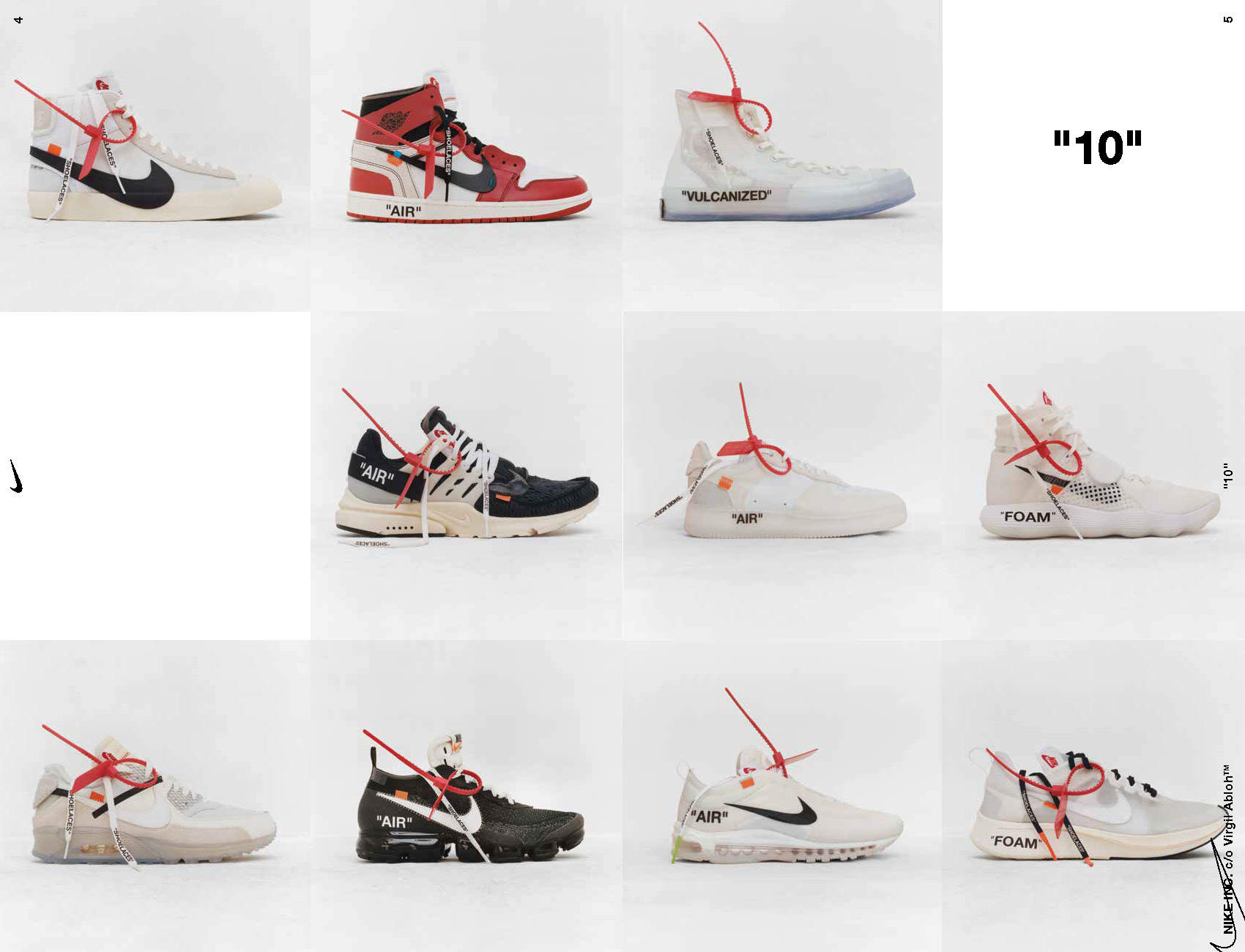 지금의 버질 아블로(Virgil Abloh)의 하입을 일으킨 대표적인 히트작은 나이키와 협업한 ‘The10’시리즈 이다. 나이키의 역사에서 대표적인 스니커즈 10개를 선정하고 그것을 버질 아블로의 디자인 라벨인 Off-white와 협업해 재해석하는 프로젝트였다. 2017년 9월을 첫출시를 기점으로 순차적으로 출시되었다.