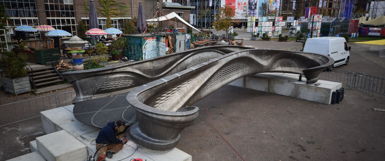 이미 Bone Chair로 역사에 이름을 새긴 그는 한발짝 더 나아가 스타트업 회사 MX3D를 설립했다. 소프트웨어회사 Autodesk, 건축구조엔지니어링 회사 ARUP, 요리스라만 스튜디오, 영국의 국립 데이터 사이언스 인공지능 연구소인 엘런튜링 연구소 등 여러 분야의 회사에서 투자를 받아 설립한 MX3D는 정말로 새로운 시대를 열고있다. 요리스 라만은 Bone Chair의 방법론을 다리구조물, 건축으로 확장중이다. 3D프린터 로봇이 A.I 알고리즘으로 자동생성된 다리구조물을 자동으로 출력해 나간다는 망상은 몇년전까지만 해도 시간이 오래 걸리고 헛된 망상에 그칠것이란 예상이 우세했지만, 기술의 발전으로  2018년 10월 첫번째 결과물을 완성 시켰다. 여기서 그의 목표는 끝이 아니다. Smarter Bridge 프로젝트로 다리에 센서를 부착해 다리를 실시간으로 이용자의 하중과 동선 등의 데이터를 분석하고 그 데이터를 바탕으로 더욱 최적화된 다리를 이어서 프린트 해 나간다는 것.